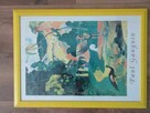 Reprodukcja obrazu Paula Gauguina. Kolorowa, malarska kompozycja przedstawiająca krajobraz z postaciami i ...
