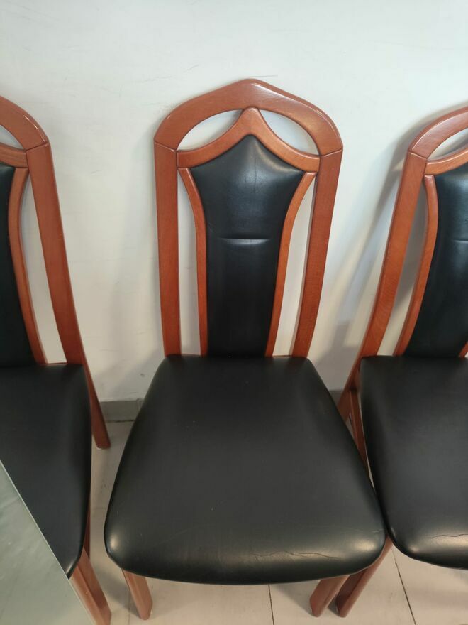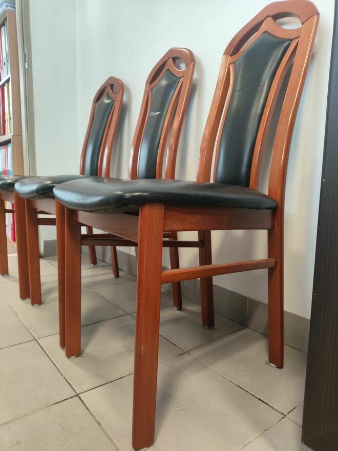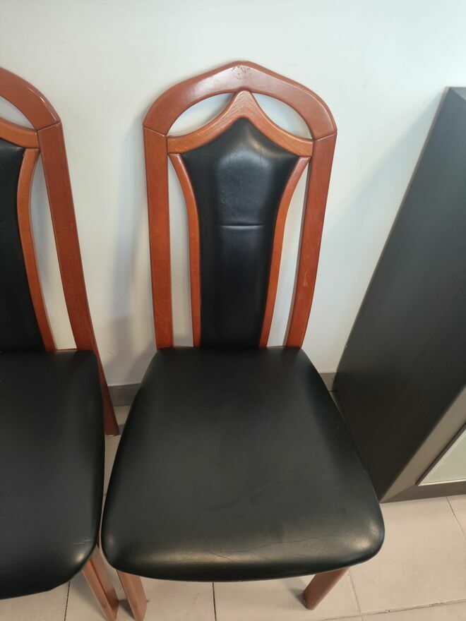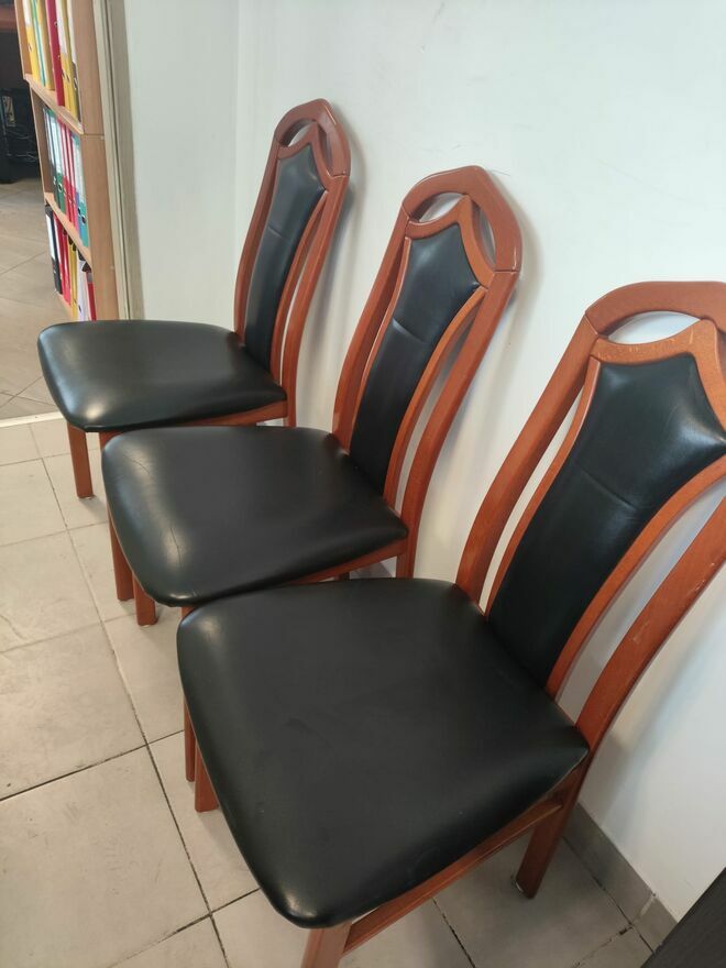 Sprzedam 3 szt krzesła klasyczny model drewniany z czarną tapicerkąStan używany - widoczny na zdjęciach